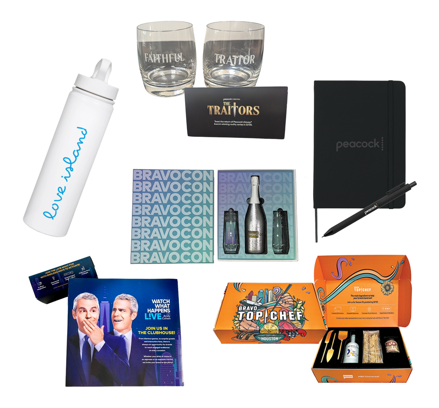 Peacock- and show-branded items for Sales use, leveraging IP to maintain top-of-mind awareness, deepen client engagement, and support partnership discussions throughout the year.